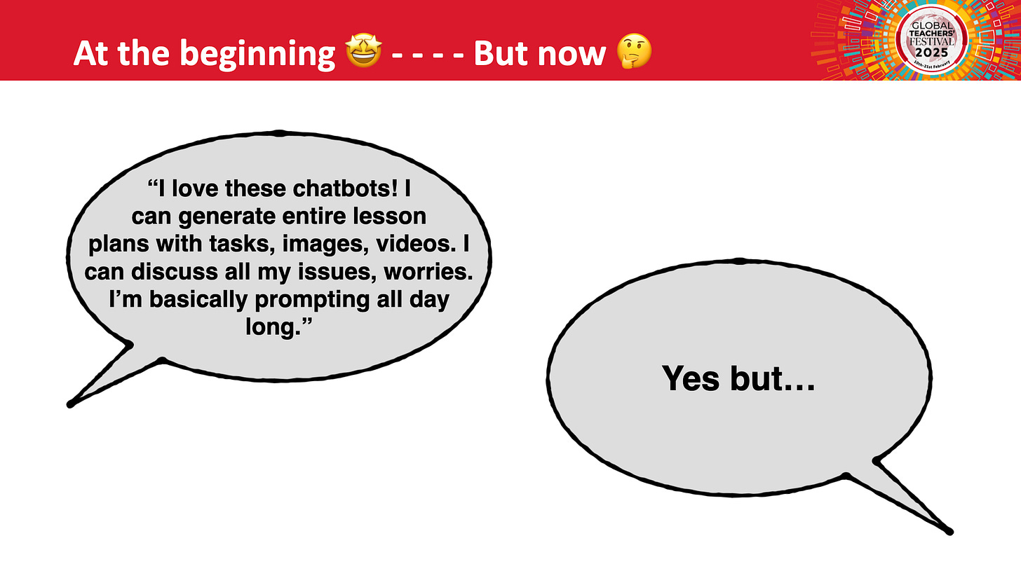 So I think it’s time to revisit my talk at this year’s Global Teachers' Festival for Macmillan, which takes a balanced look at GenAI tools, and tries to predict what’s going to come after the so-called Honeymoon Phase.